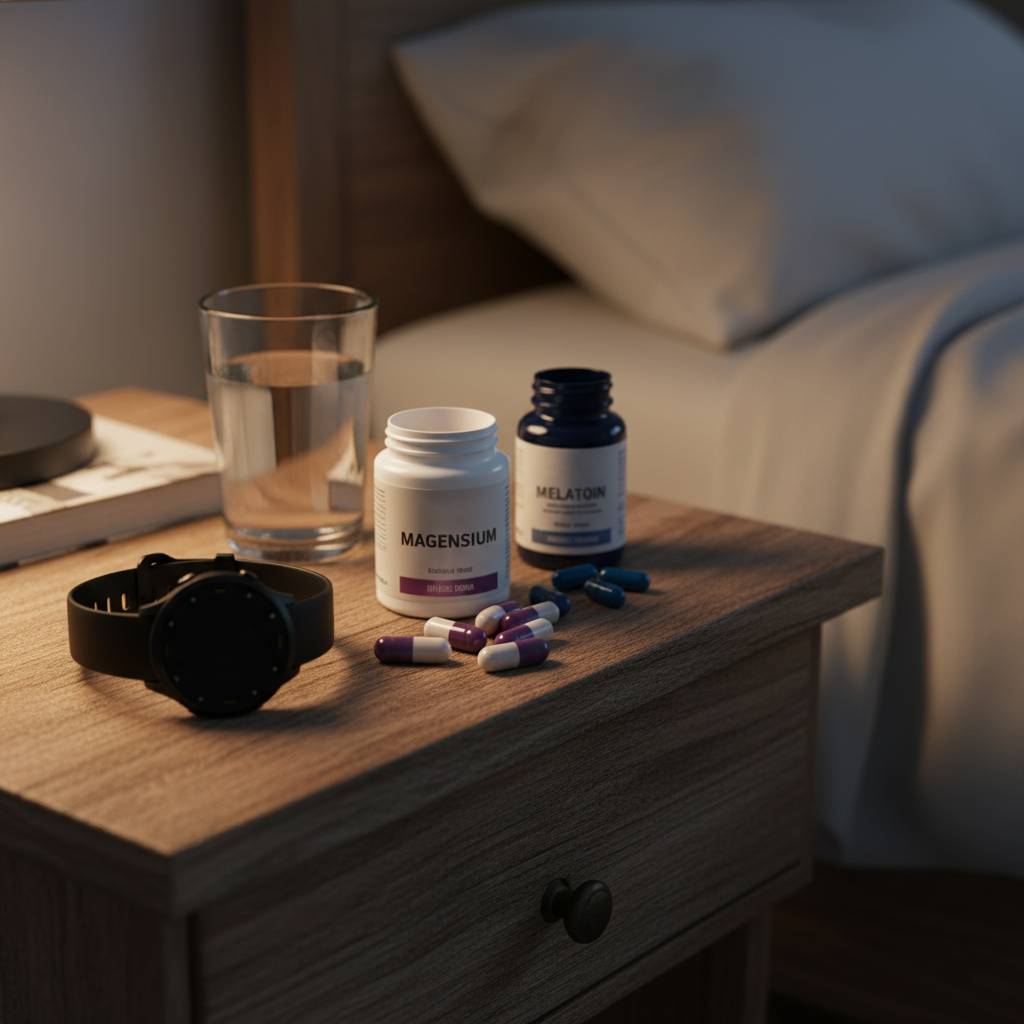- Начните с магния 200 мг вечером и мелатонина 0,5 мг при необходимости для адаптации.