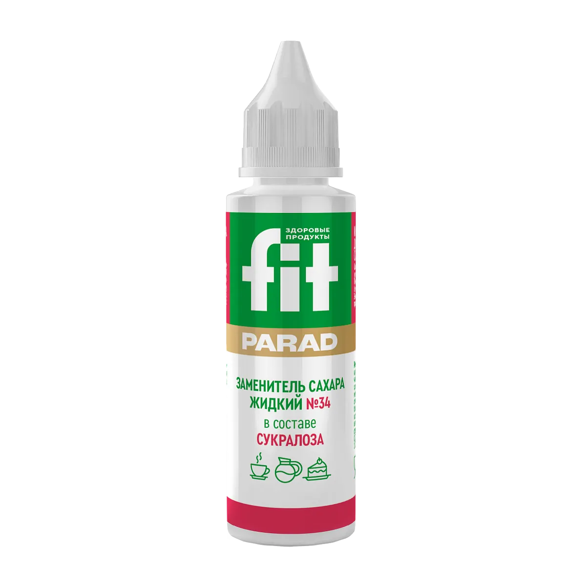 FitParad №34 — жидкий сахарозаменитель на основе сукралозы в удобном флаконе с дозатором для здорового питания, контроля веса и диабетического рациона.