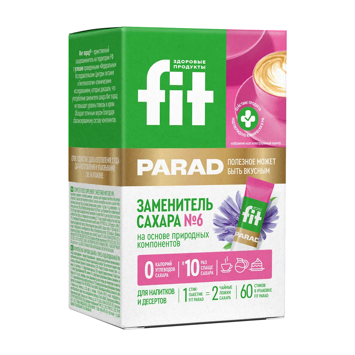 FitParad №6 — премиальный сахарозаменитель, сочетающий четыре природных компонента: эритрит, стевиозид, сукралозу и экстракт шиповника. Эта формула обеспечивает идеальный сладкий вкус без калорий, гликемического отклика и постороннего привкуса.