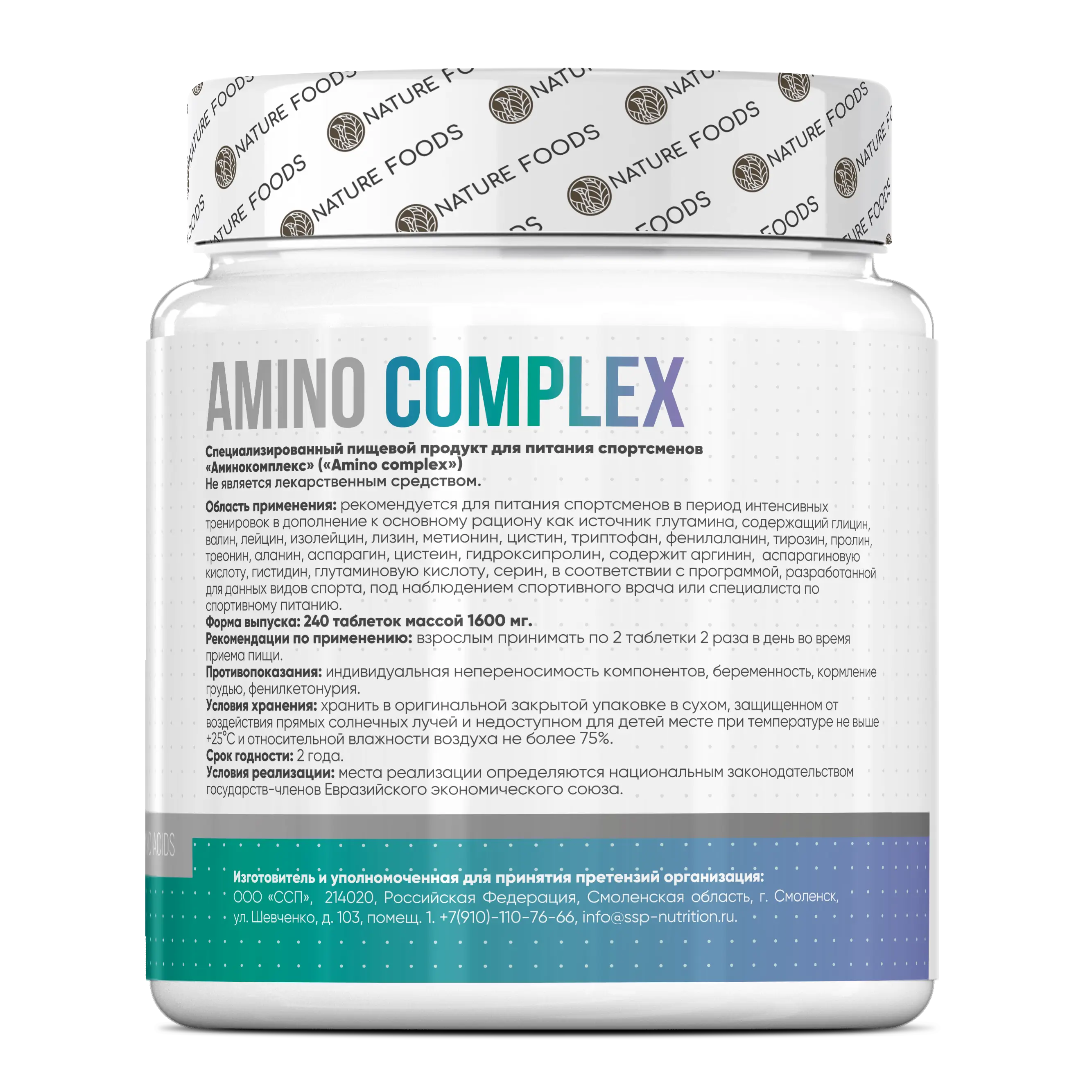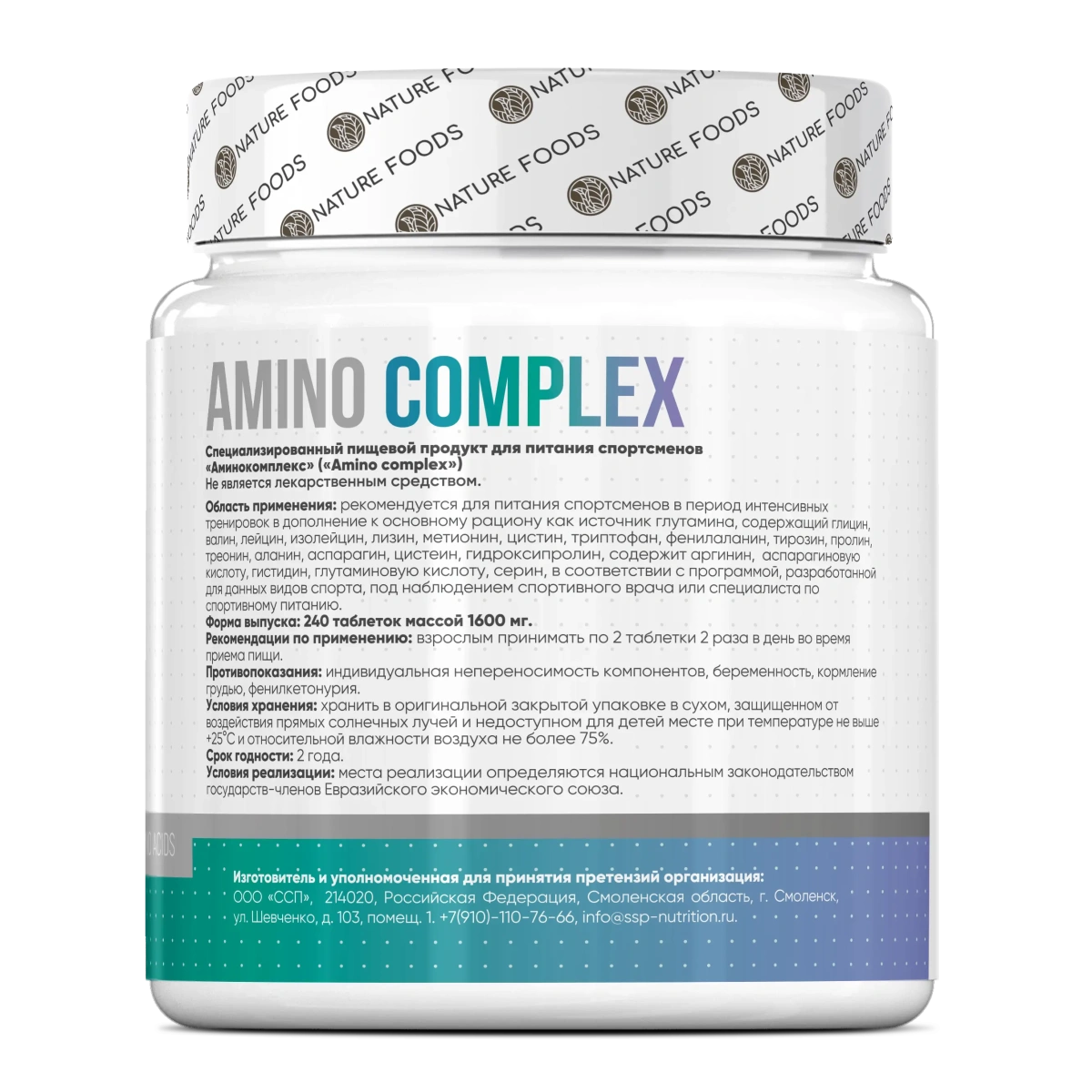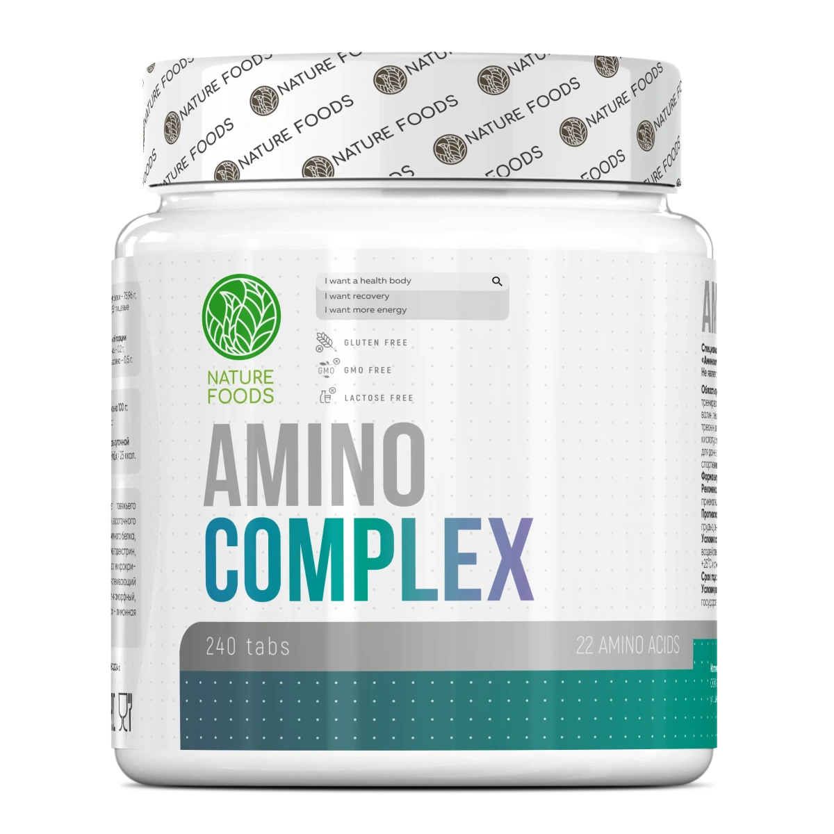 Nature Foods Amino Complex — комплексный аминокислотный препарат с полным спектром незаменимых и заменимых аминокислот для поддержки мышечного роста, восстановления и общего метаболизма.