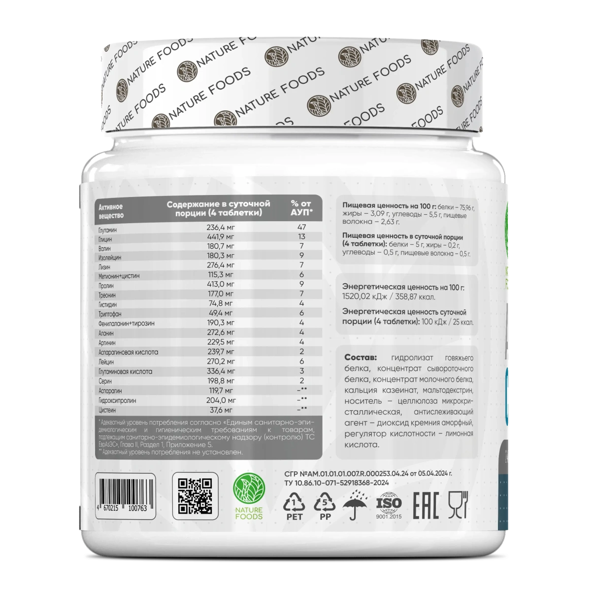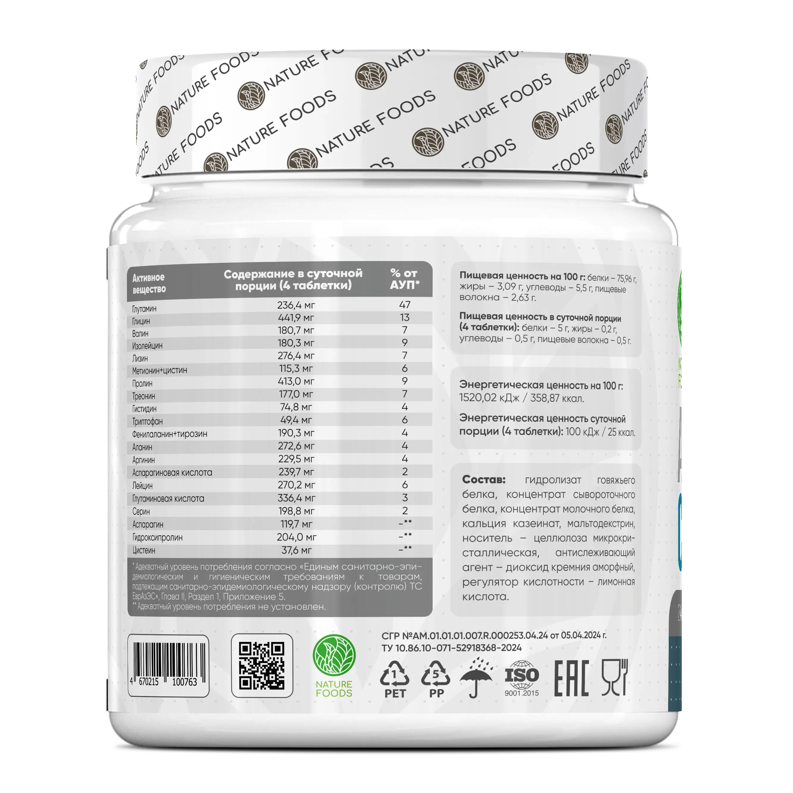 Nature Foods Amino Complex — это сбалансированная формула, содержащая полный набор аминокислот, необходимых для синтеза белка, восстановления тканей и поддержания оптимального метаболизма. Продукт разработан для спортсменов, ведущих активный образ жизни людей и всех, кто стремится обеспечить организм качественным белковым строительным материалом.