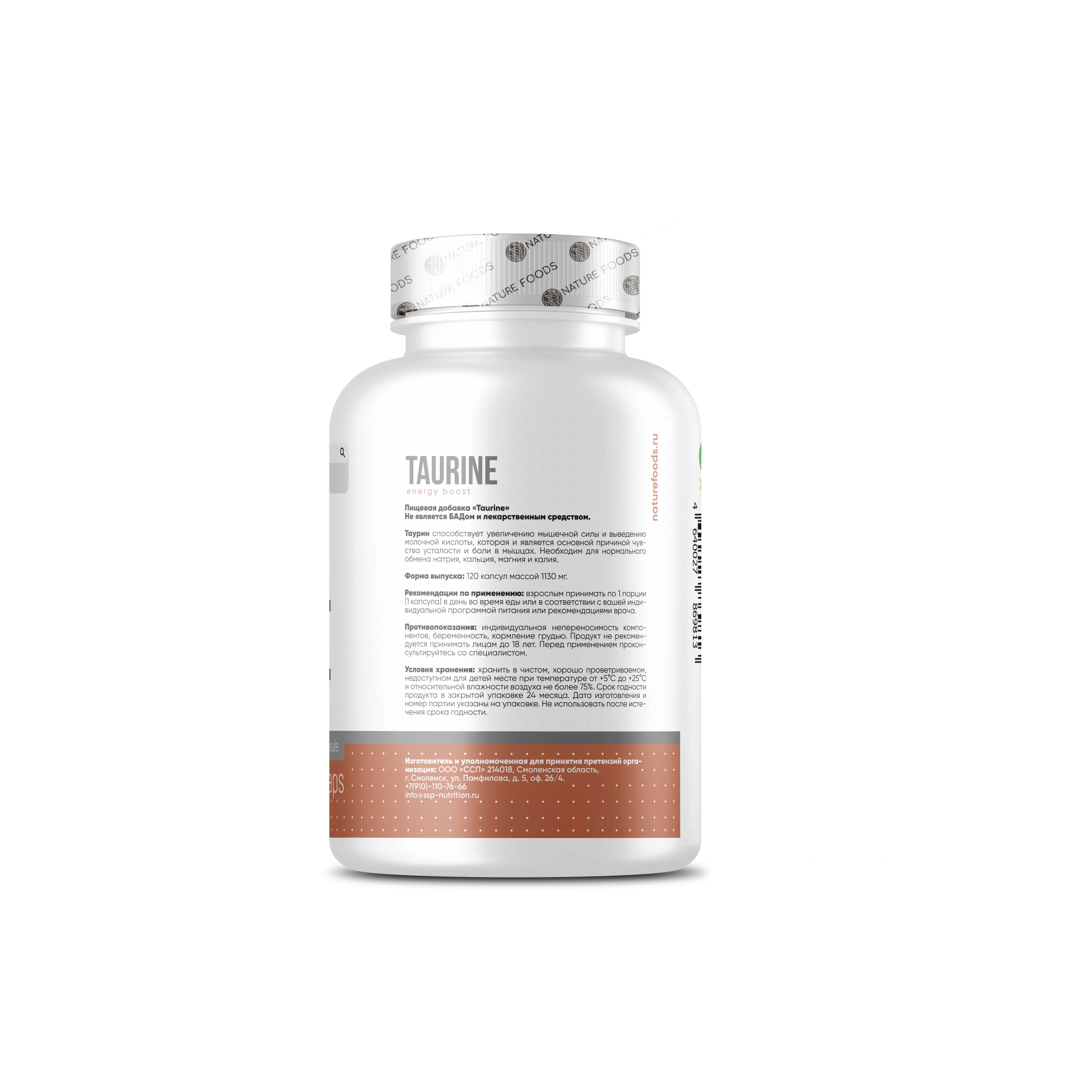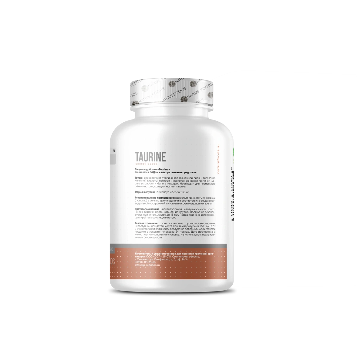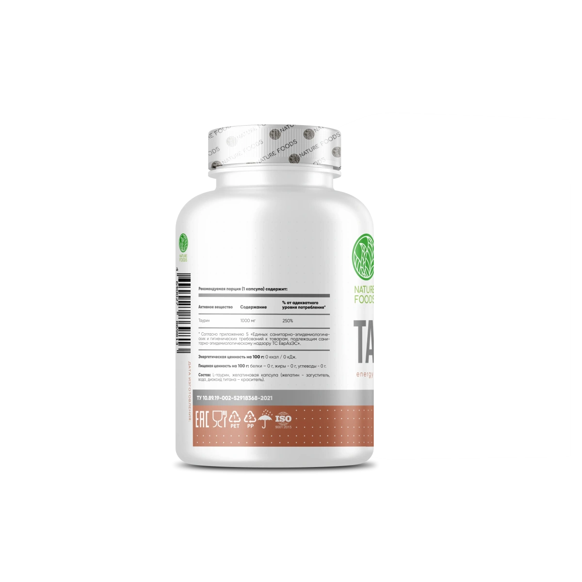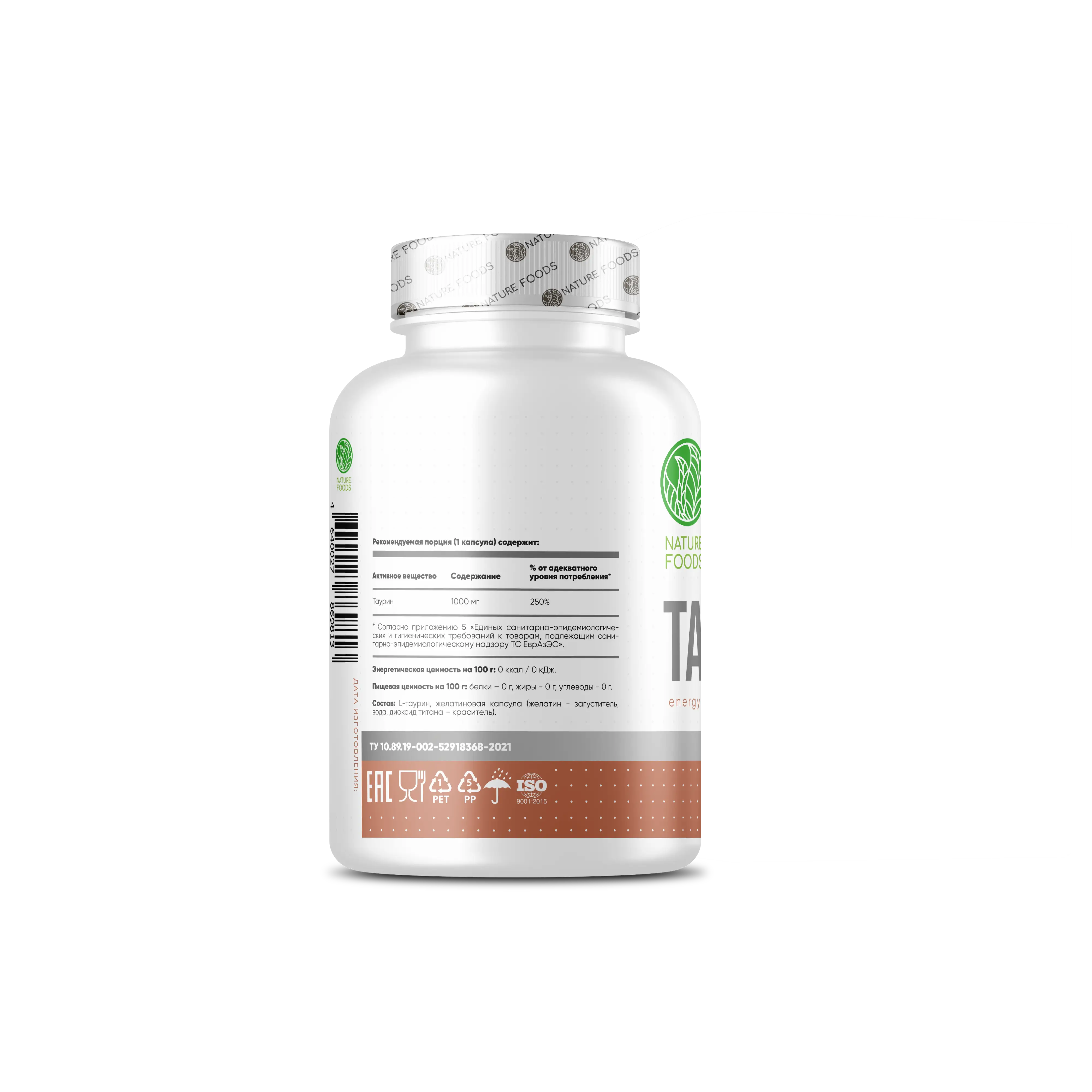 Nature Foods Taurine — высококачественная аминокислота таурин в удобных капсулах для поддержки энергии, сердечно-сосудистой системы, зрения и спортивной работоспособности.