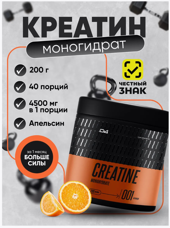 Креатин Моногидрат / 200г / апельсин Do4a Lab